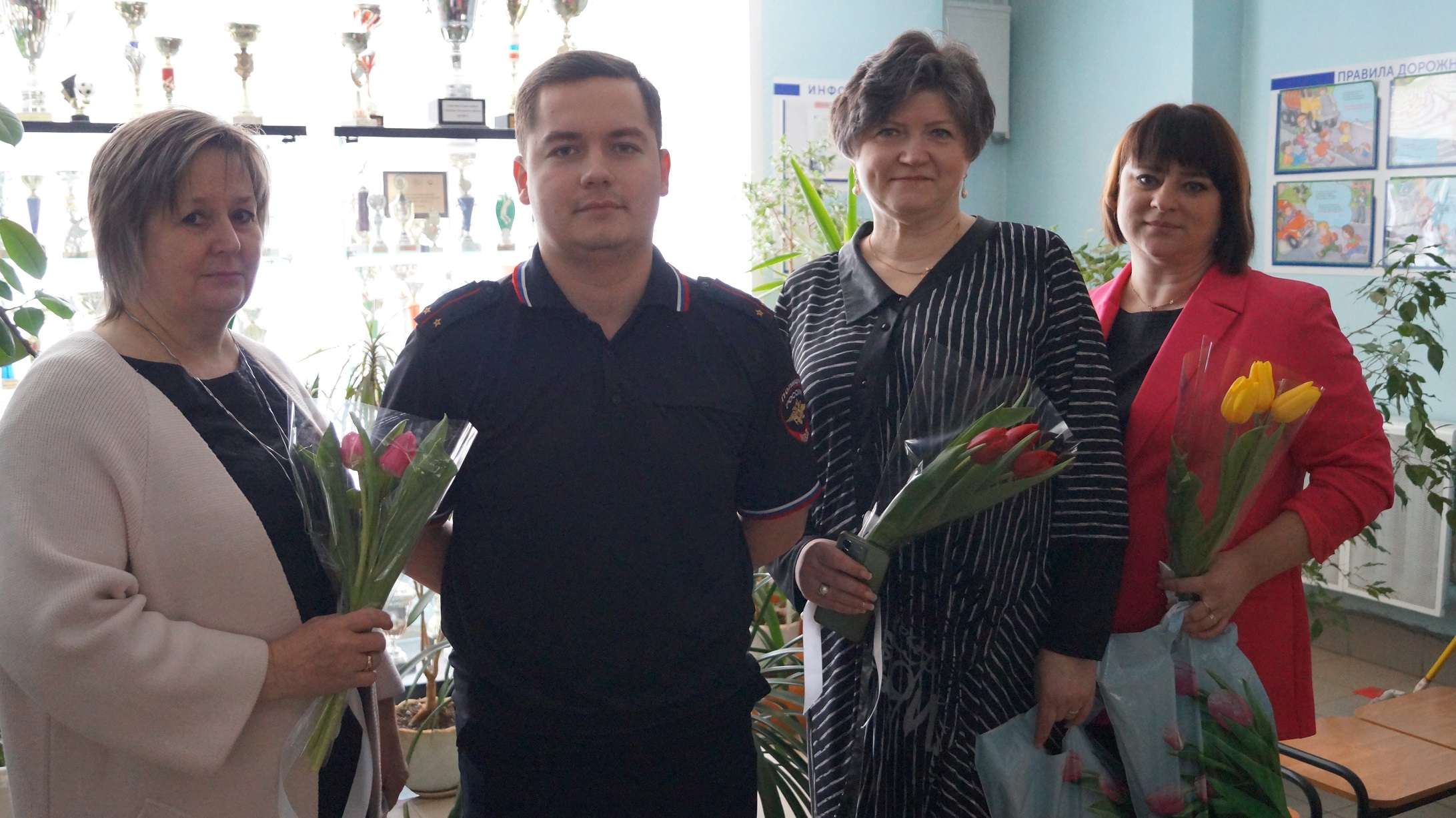 В знак уважения и признательности сотрудник полиции вручил ветеранам цветы и памятные подарки.