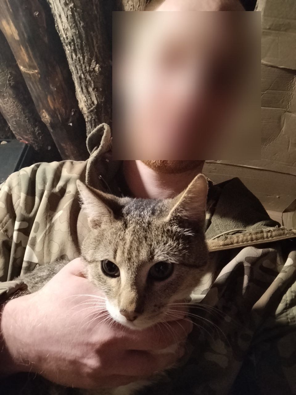 "Он у них появился, когда был ещё котёнком, но они были на другом месте. Их блиндаж там разбомбили и пришлось переезжать, переехали вместе с котом."